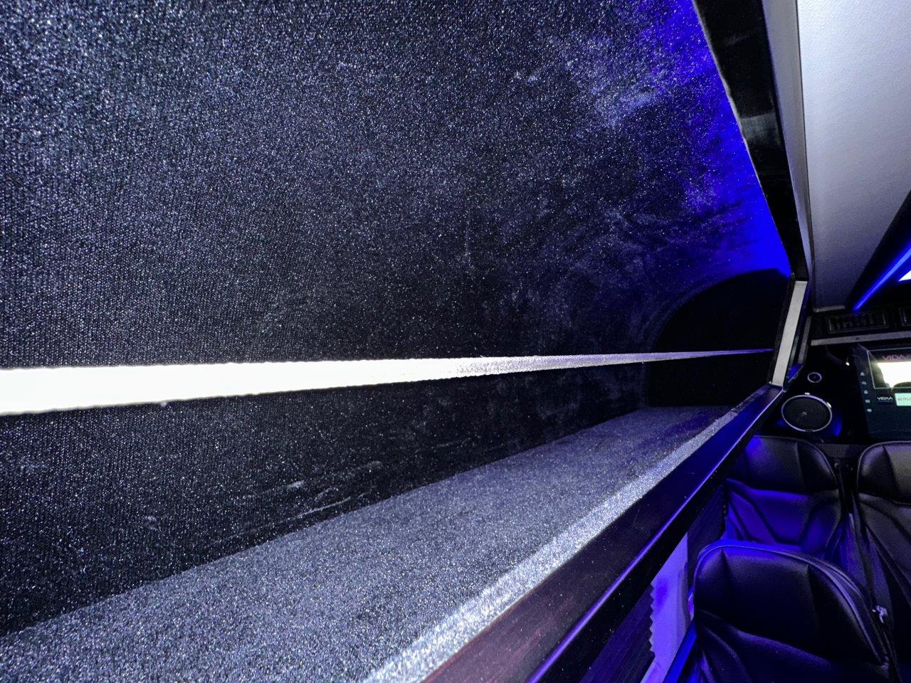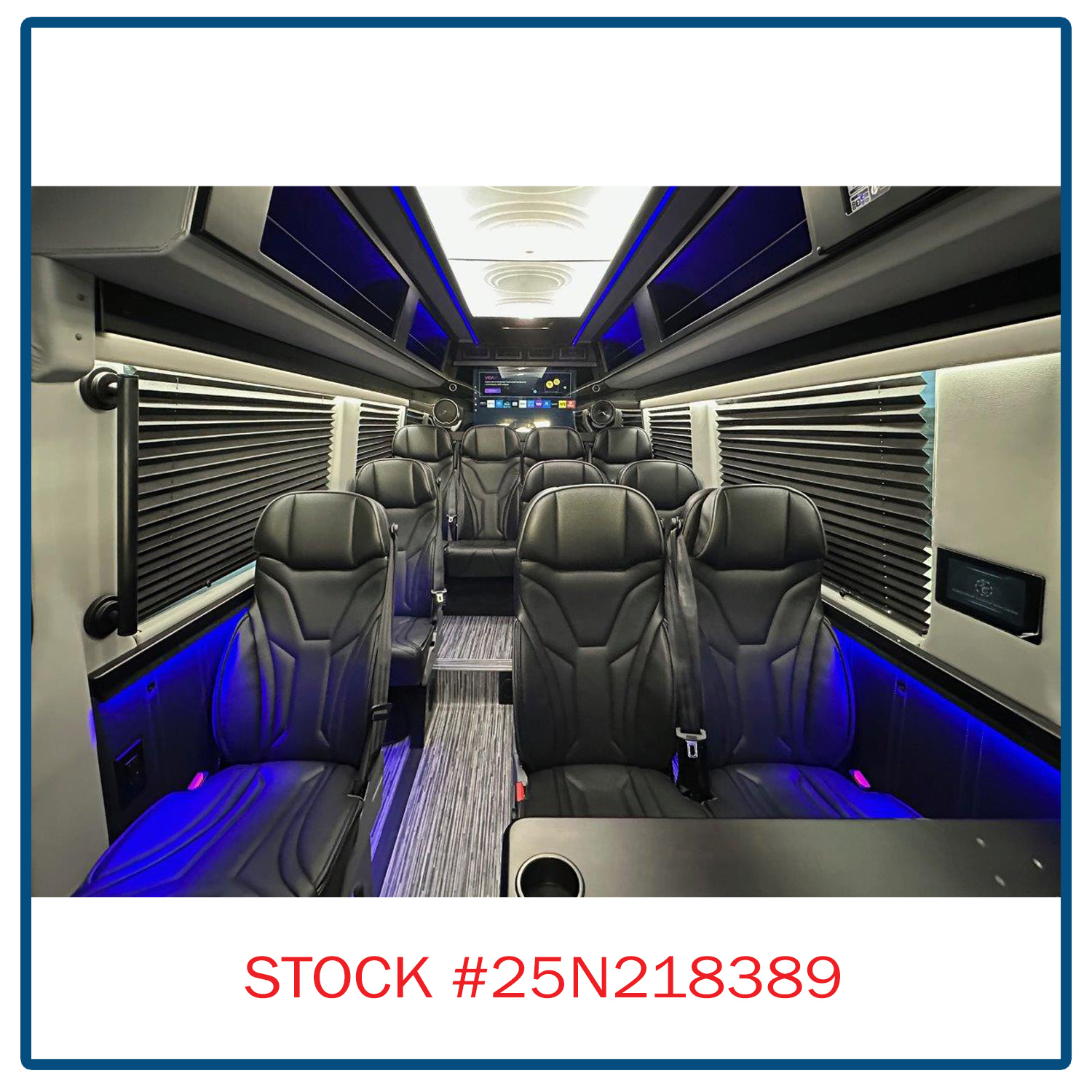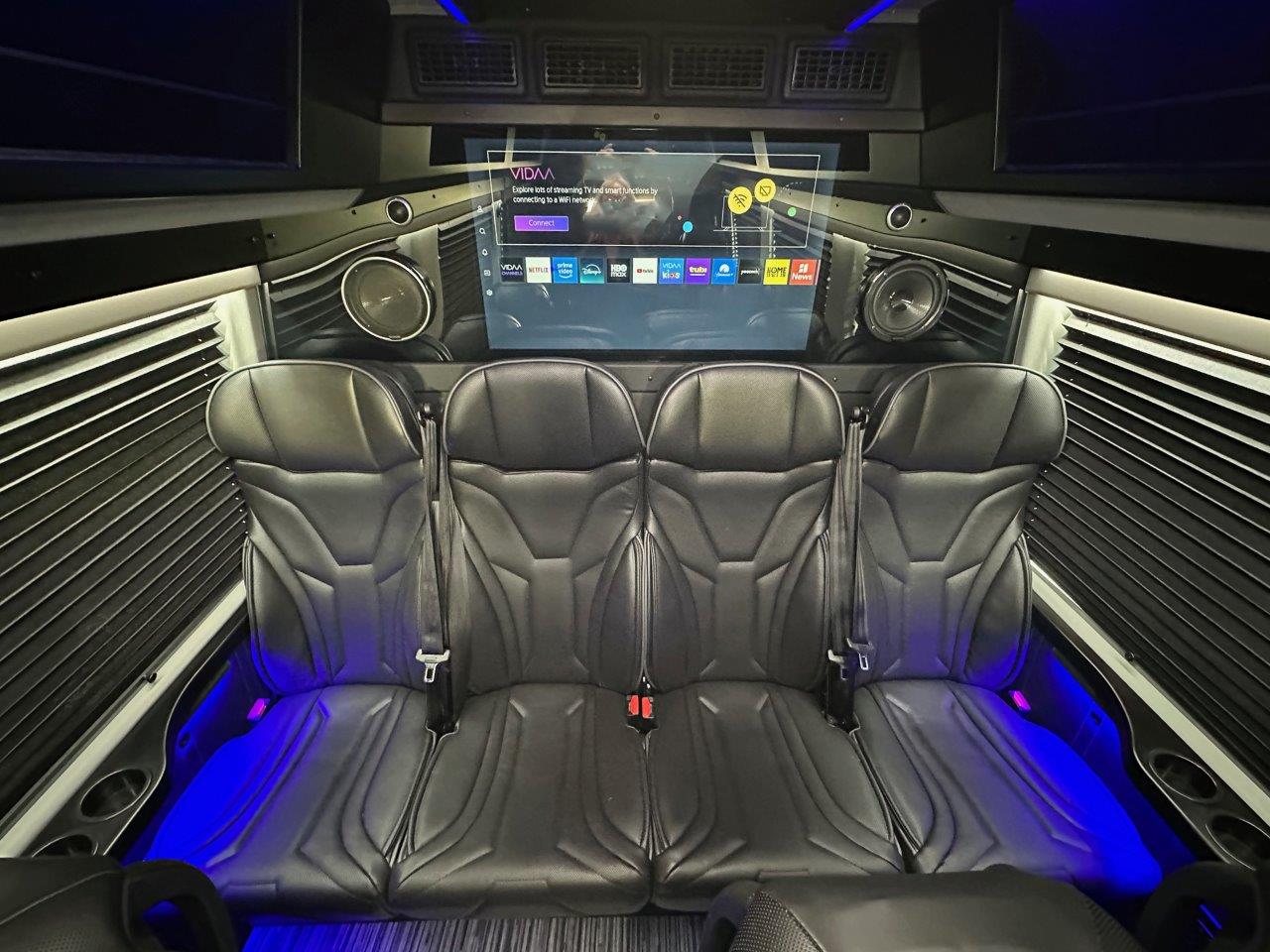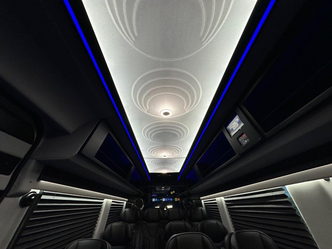 Equipment2.0L L4 Diesel, 3500 XD 170″ HT Extended, Black Exterior, Black Leather Interior,  13 Passenger + Driver & Co-Pilot, Overhead Storage Racks w/Lighting, 3-Rear Facing Seats, Captains Chairs w/Armrests, Tables & Recline, 2-TV’s Front/Rear, Rear Luggage Compartment w/Shelf, Solid Wood Table, RGB Lighting, Touch Pad Controls, Electric Door, Electric Step, Rear Climate Controls, 60,000 BTU AC/Heat, ECB Skylight Ceiling w/Indirect Lighting, Custom Wood Trim w/Cup Holders, USB Outlets, Entry Assist Handle, Full Privacy Shades, Back-Up Camera